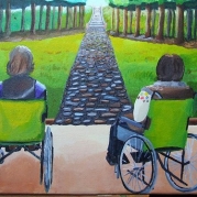 Her companion, driving an electric wheelchair, caught my eye.  She smiled at me.  Not directly at me because her posture was compromised, her head was tilted and she hunched slightly to one side.  Instantly, she reminded me of Trisha.  Trisha would smile this same smile; a smile that was not only very sincere but also appeared to be of someone not entirely of this time and place, a naive, child-like, vulnerable smile.  Yes folks, today, Grief shoved its stiletto blade back into my chest.  My heart broke.  Rather than have to explain my wobbly lip, I excused myself and let the women have the lift to themselves.